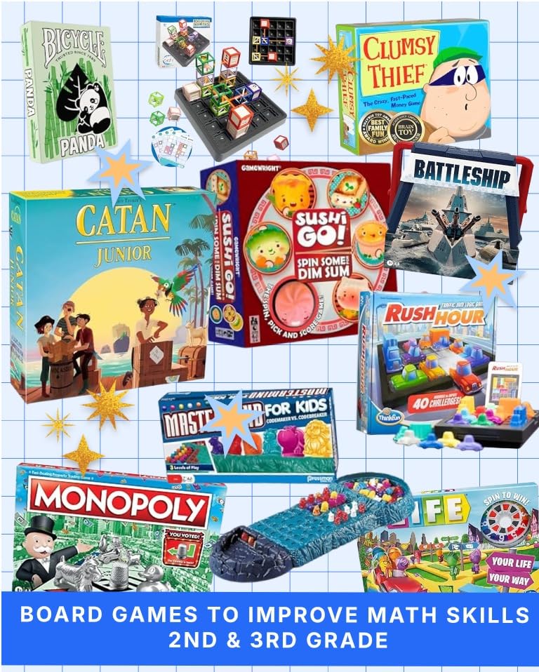 Game of Life & Monopoly – Both of these games target similar skills with students moving around a board and managing money. Some simple addition and multiplication can be found in both games with Monopoly being the more complex option of the two. This is another set of games where there is a TON of mental math and calculation practice without kids knowing that that is what is going on!