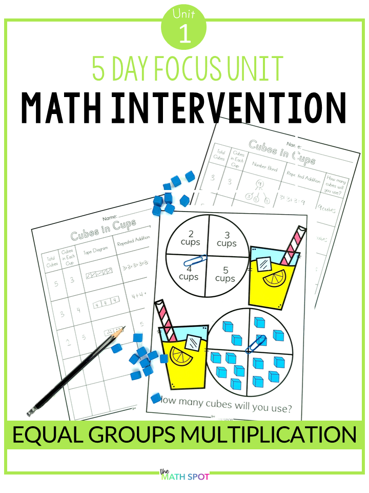 Of course, keep in mind when you are working with models that we want to continue to “think CRA“. We are building a web of understanding! So instead of using the discrete model alone to teach about equal groups, I might also pair it with a number bond model that more clearly shows the part/whole relationship. I might also ask students to write a matching equation to get to the abstract level.