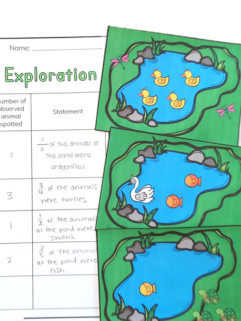 For example, if a student sees 12 objects and circles 4 of them, they can see that 4 out of 12 objects represent one-third of the set.