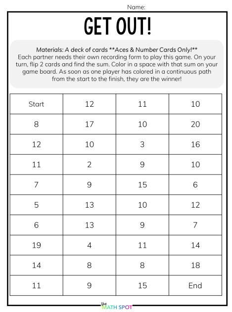 If you are working on +1 facts, look for games that ask students to practice exactly those facts. If you are working on doubles, use games that reinforce doubles.
